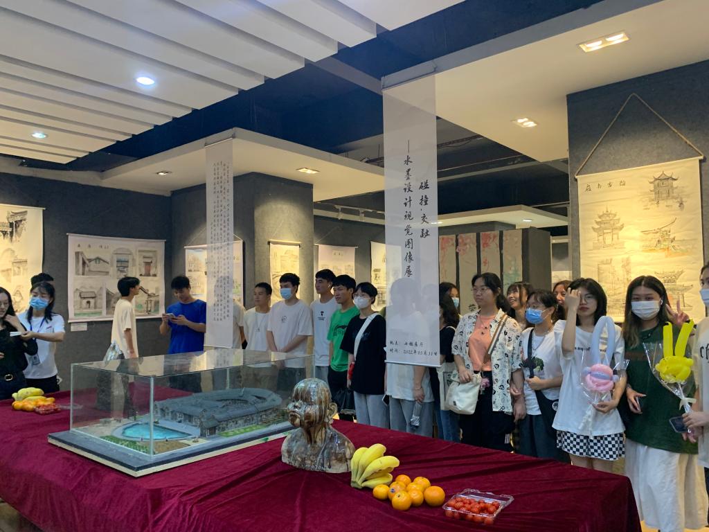 6月9日,19级环境班《碰撞.交融—水墨设计视觉图像展》综合楼美术展厅开幕。bevictor伟德经理尚华、经理助理陈祖蕃、办公室主任唐海春主,19级环境班全体同学与本次课程指导老师曾秋共同出席了开幕式。