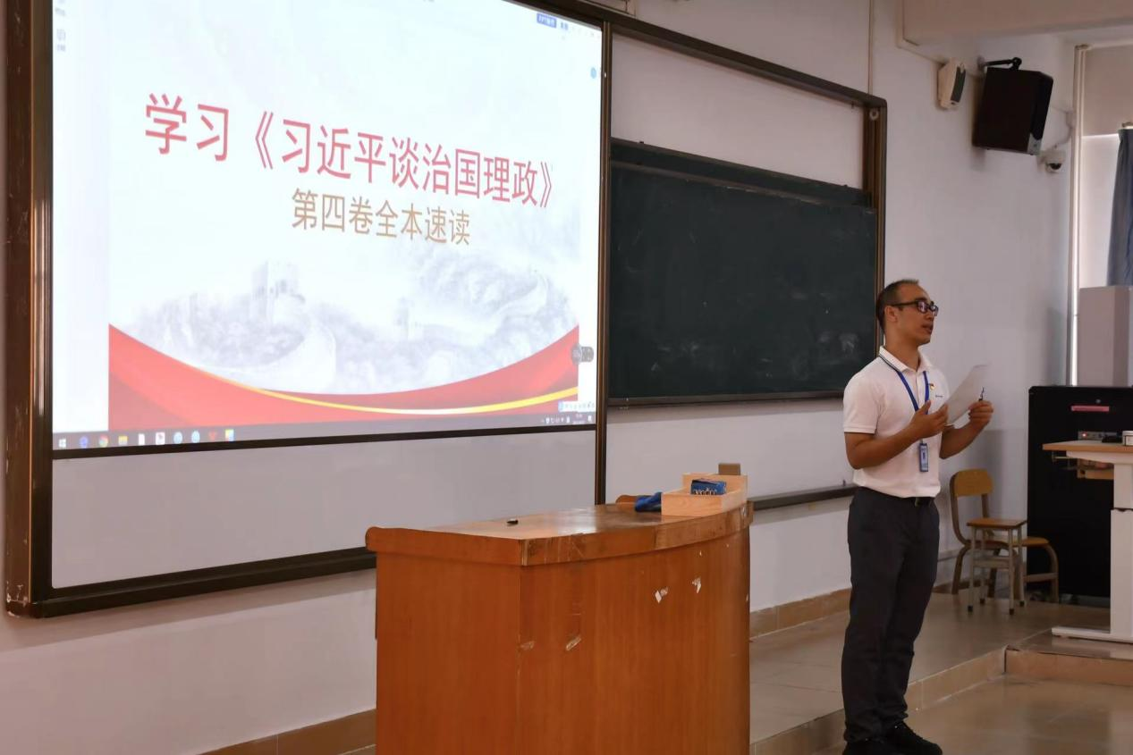 9月22日,公司党总支副书记颜冬果在综合楼418教室以“学习《习近平谈治国理政》第四卷心得”为主题开讲秋季学期思政第一课,各班员工代表共50余名同学到场聆听。