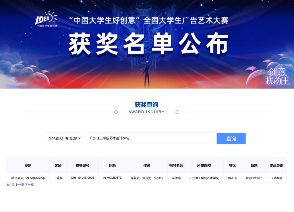 2022第14届大广赛“即时设计”动画类赛题仅设置全国一、二、三等奖各一名,本次大广赛共有参赛院校1869所,约174万人次参赛,网上提交作品数共744401组。bevictor伟德师生作品从中国美术公司,黑龙江大学,北京航天航空大学,辽宁科技大学等竞争作品中脱颖而出,以该赛道第二的成绩获得了大广赛二等奖。