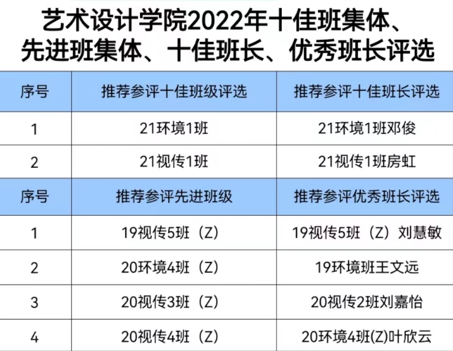 经过班级申请、班级评选、公司审核,现拟推荐21环境1班等班级为十佳班集体、先进班集体,推荐邓俊等为十佳班长、优秀班长的公示结果进行公示: