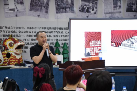 揭牌仪式后,在金天成印刷包装城杨东峰总经理带领下员工们进入研学实践报告厅,首先由杨东峰总经理致欢迎辞,鼓励员工们将创新与实践相结合,希望员工们在本次研学活动中能学以致用。