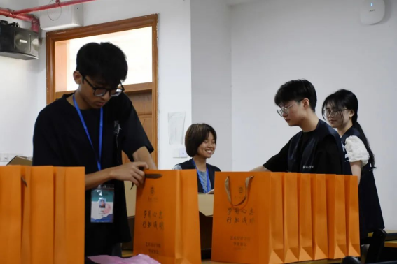 毕业生们签到后,在13栋休息室领取学士服、领带、领结、餐券和水;工作人员将这些物品装进bevictor伟德定制的礼品袋中,便于毕业生们携带并参观许久不见、日新月异的母校。
