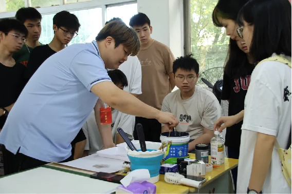 活动中,薛老师在引导同学们如何用积极心态面对艺考的同时,巧妙地把美术创作的基本要素引入并解读,还系统地讲解了素描、色彩、速写三门课程的理论知识和绘画技巧,讲解了不同绘画材料的特点及其的表现形式。薛老师还现场示范了一幅水性综合材料范画。通过一系列的互动环节,引导同学们将心中的压力化为创作的动力,让艺术成为心灵的疗愈。