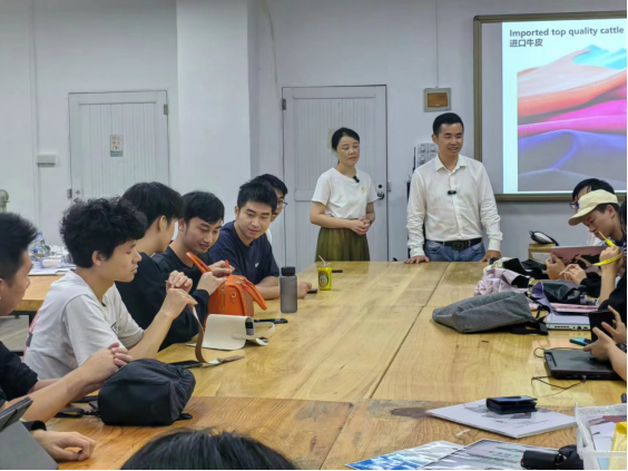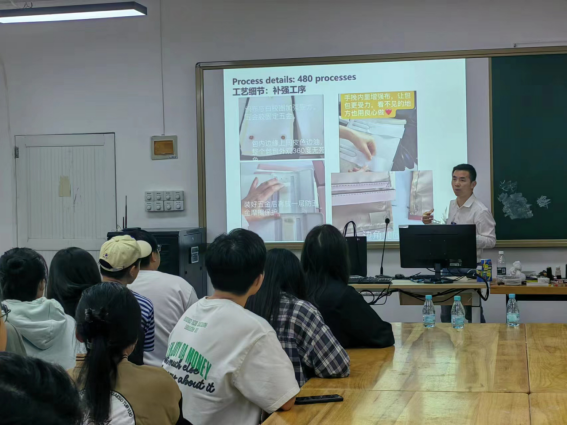 宣讲会上,徐远庚总经理介绍了企业的业务范围、规模,以及企业发展历程,通过PPT演示和解说全面展示了公司的形象,讲解了企业优质的就业机遇与创业的前景。同时向同学们展示具有特色的皮具包包,并详细介绍其设计理念和创新工艺。