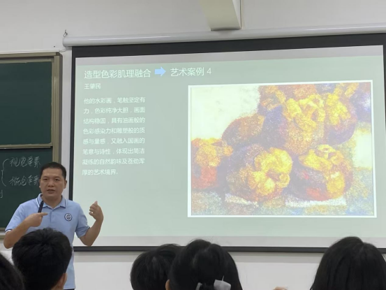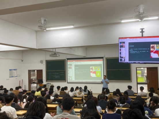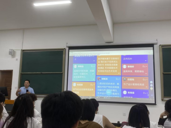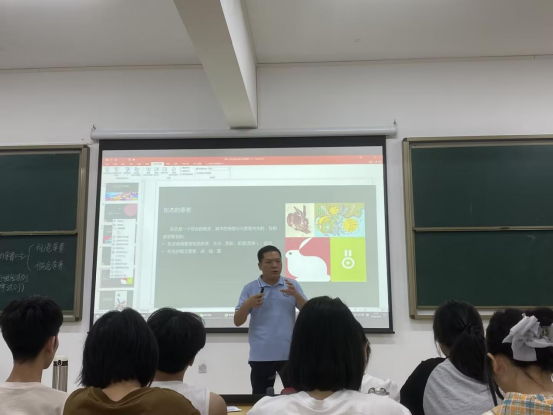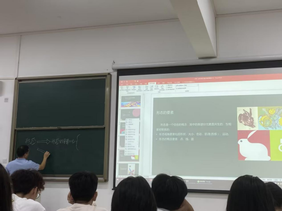 邹副教授介绍了艺术与设计中形态的概念要素与视觉要素,讲解了形态的组合形式法则,帮助同学们了解艺术设计基础知识,并特别讲到艺术设计在界面设计、动态设计、虚拟现实和增强现实艺术等方面的重要应用。最后,邹副教授用"长风破浪会有时,直挂云帆济沧海"来勉励同学们在艺术设计学习的道路上积极进取。
