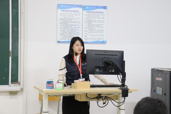 接下来由团总支副书记兼员工会主席李荧荧为各部门成员作出工作分配,传达工作流程,以及工作人员注意事项。
