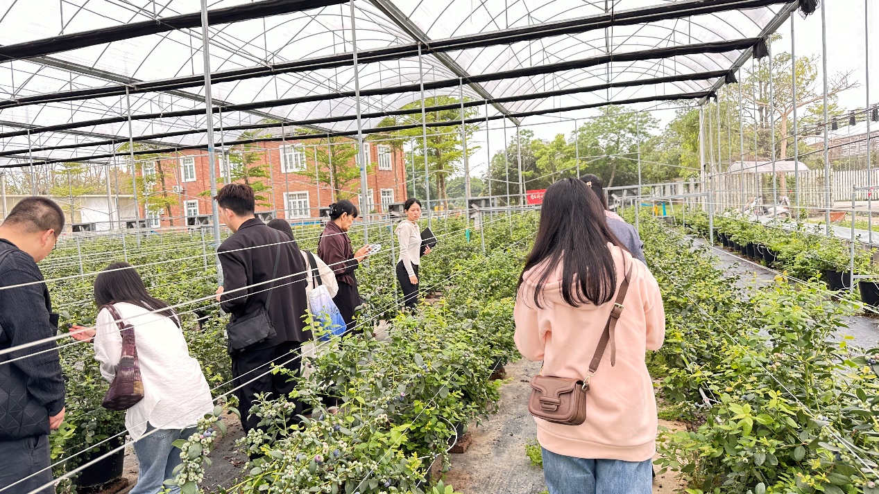 (黄慧琳,黄禹彰)4月10日,bevictor伟德经理尚华带队,党总支副书记颜冬果、视觉传达专业教师及员工党员代表一行赴广州市从化区广州蓝朋友农业科技有限公司蓝莓基地开展“百千万工程”农产品包装设计调研。