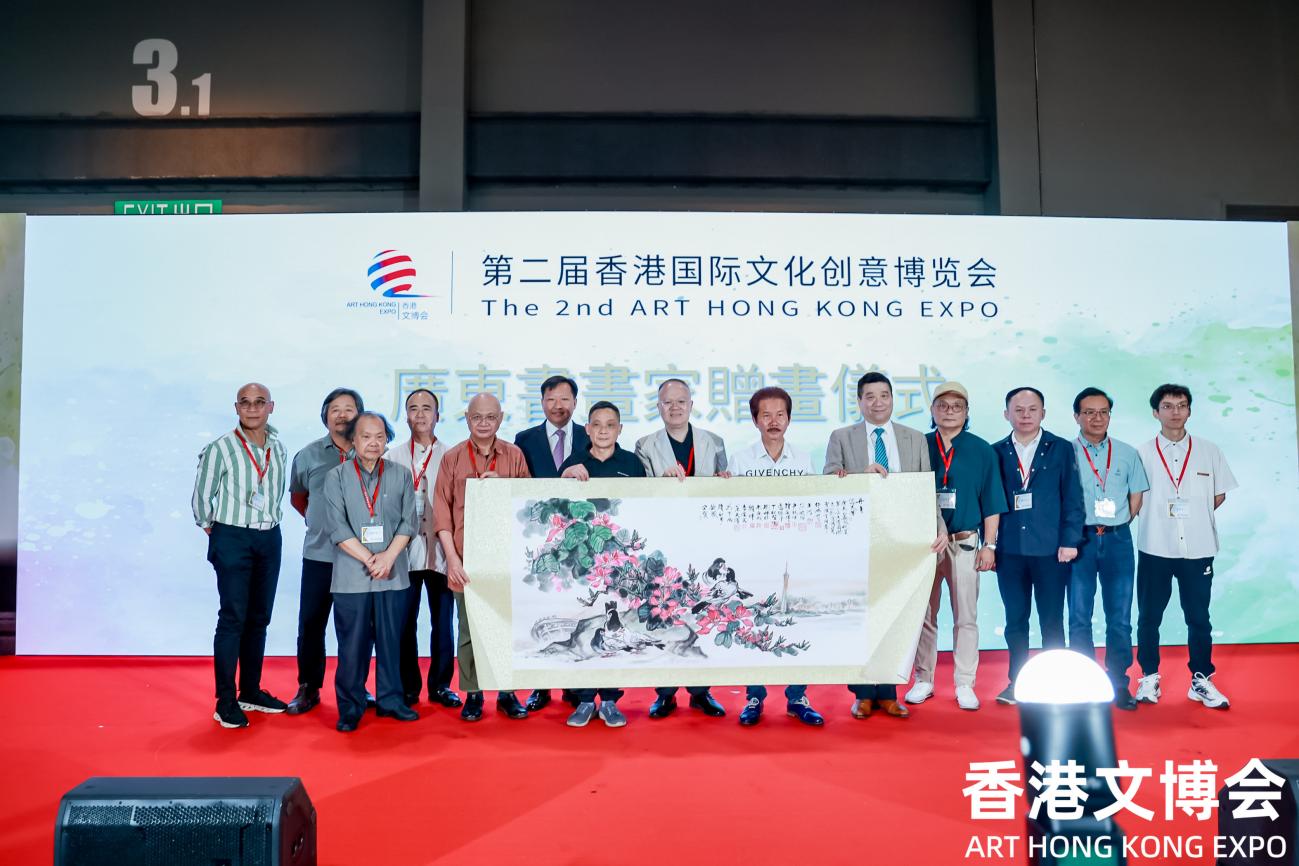 范天泽老师与艺术家们共同创作的《丹青写美景》作品,最终作为一份珍贵的礼物赠予了文博会主办方,象征着艺术与文化的交流与融合,为文博会增添了一份特别的意义。庆祝活动圆满成功,不仅为第二届香港国际文化创意博览会的开幕增添了光彩,也为推动中国文化艺术的国际交流与合作提供了新的机遇。