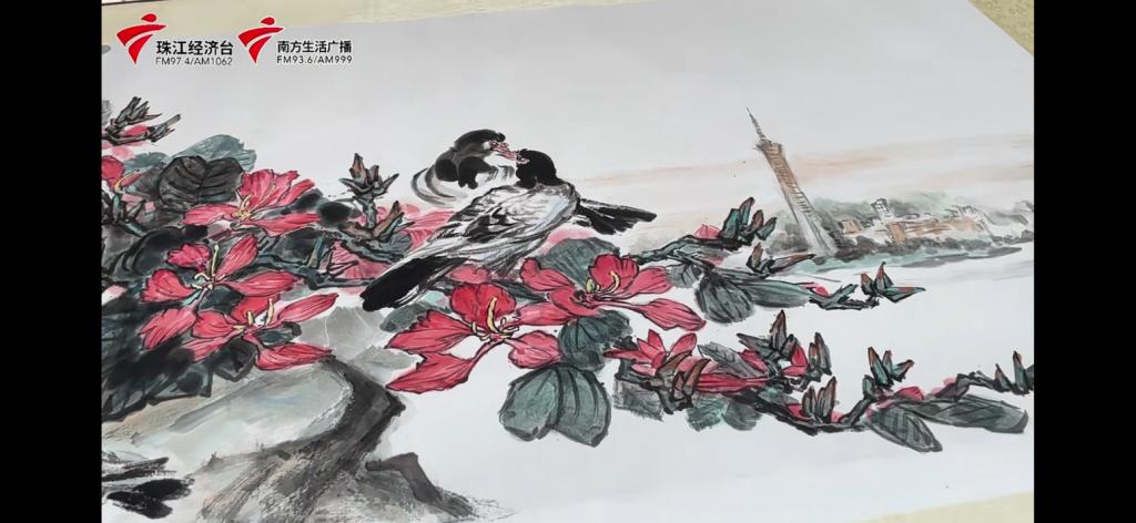 图为《丹青写美景》画面细节——和平鸽与广州塔