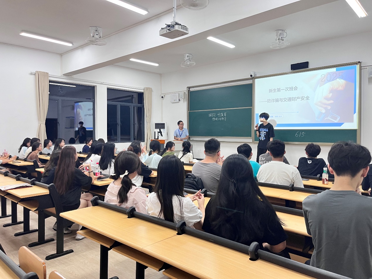 班会重点开展了预防电信网络诈骗专题教育,通过剖析典型诈骗案例,深入讲解常见诈骗手段及防范措施,切实提升新生的安全防范意识。同时,辅导员从交通出行安全、人际交往、防灾减灾等方面提醒新生注意人身、财产与交通安全,要求大家严格遵守校规校纪,尽快适应老员工活。