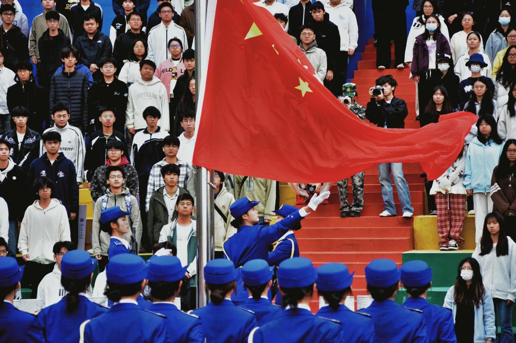 在庄严的国歌声中,本届运动会正式拉开序幕。艺设学子们以饱满的精神状态整齐入场,步伐坚定、口号响亮,充分展现出蓬勃朝气与青春风采,成为开幕式上一道亮丽的风景线。