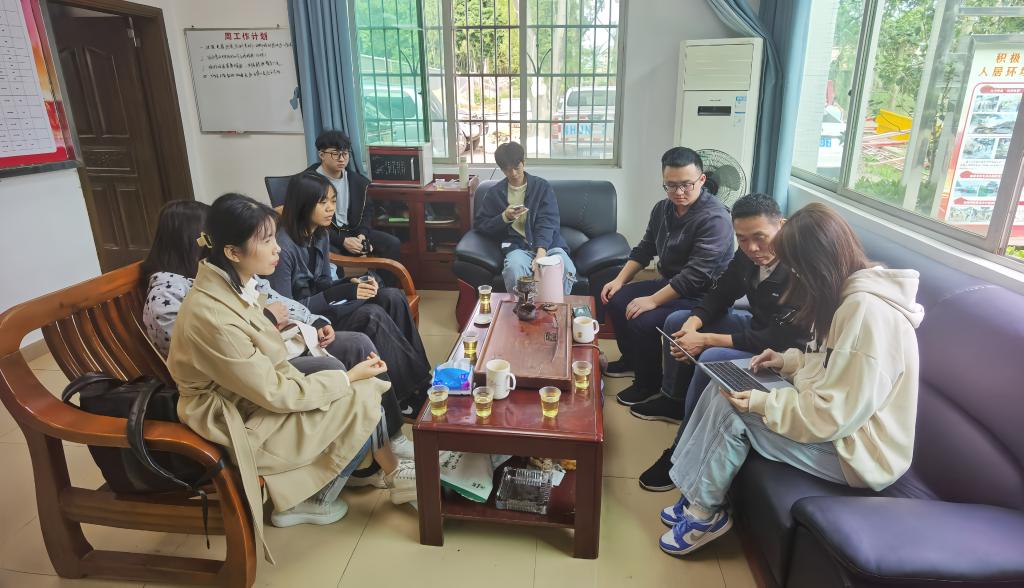 座谈会后,团队立即前往蚁田、龙头、营脚三村实地调研。在蚁田村进田坑区域,广东亚视演艺职业公司陈晓莹老师设计的露营地改造方案,因包含综合服务区、夜香花观光区及观景平台、栈道,得到张振通书记认可,认为符合村落发展规划。在龙头村,团队聚焦镬耳屋建筑群,用相机拍摄、笔记本记录建筑色彩、材质及纹路细节,为入口标识优化提供依据;在营脚村,通过走访天心禅寺,提取寺庙建筑风格、装饰图案中的禅宗元素,补充至村域品牌形象设计中,增强地域特色。