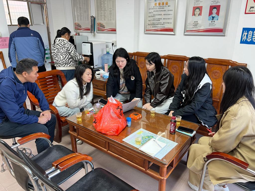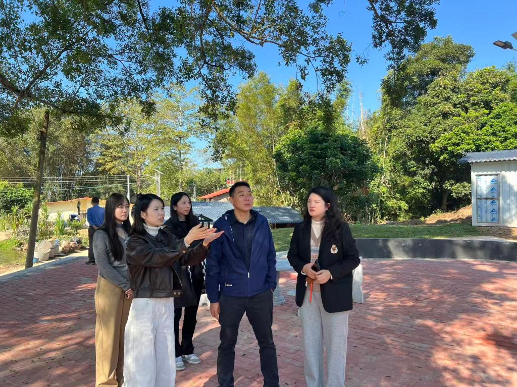 12月14日,广东省农村科技特派员赖家恩、罗诗妍、陈昭阳、赵琪四位老师,在蚁田村党群服务中心与镇委副书记陈启浩、副镇长臧路晴及村党支部书记张振通,开展12月下旬墙绘实践专项交流会。赖家恩老师从主题立意、本土元素融合、色彩搭配及施工流程等方面汇报深化方案,获与会领导高度认可。镇委副书记陈启浩建议融入本地农耕与民俗文化,副镇长臧路晴聚焦施工安全与后期维护提出指导意见,村党支部书记张振通结合村内实际,补充墙面与周边环境协调的需求。