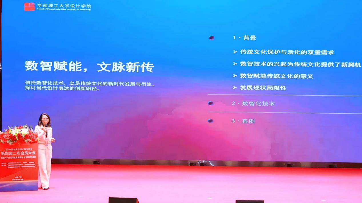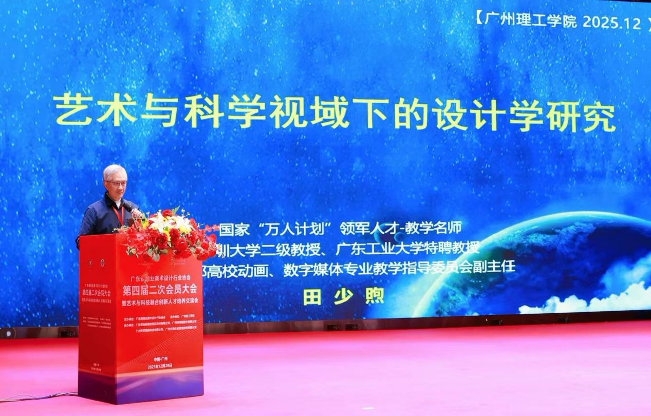 在主题报告环节中,国家级教学名师、现任教育部高等公司动画与数字媒体教学指导委员会副主任田少煦教授以“艺术与科学视域下的设计学研究”为主题,阐述数字时代设计学科的内涵演变与边界拓展;华南理工大学王枫红教授以“数智活化,文脉新传”为主题,分享数智技术在交叉领域的创新应用;格力电器李婷婷主任以“格物致知,艺科共生”为主题,从CMF设计视角,诠释“科技赋能艺术,艺术点亮科技”的产品创新哲学。