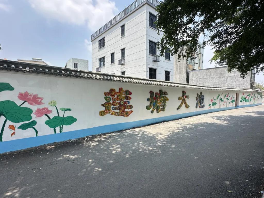 团队深入汕头鮀莲街道莲美社区,以莲塘大池周边环境为实践场域,以“莲韵潮风”为主题,完成了长达40米、高1.2米的艺术长卷。如今,莲塘大池的嵌瓷墙绘不仅成为了网红打卡点,成为了连接传统与现代、高校与社区、文化与生活的桥梁。