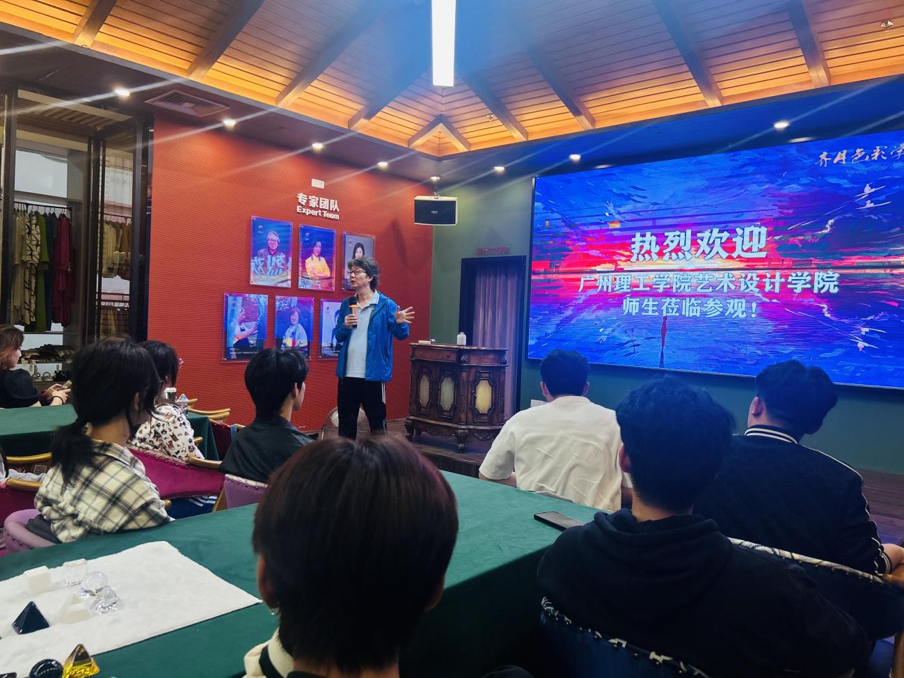 佛山市作为国内重要的家居建材和设计产业基地,拥有丰富的产业资源和先进的设计理念。此次调研活动选择在佛山开展,正是希望通过实地考察和企业交流,让员工们能够感受行业前沿,紧跟设计潮流。抵达佛山后,师生们前往齐月色彩产业创新中心。齐月色彩产业创新中心是一家专注于色彩研究与应用的企业,致力于通过色彩赋能,提升产品和空间的价值。在该中心,张总为大家带来了一场关于色彩的精彩讲座。在讲座中,张总结合多年色彩研究经验,从理论到实践,深入浅出地向员工们阐释了色彩在设计中的重要性。他提出了“美人、美心、美家、美物”的设计理念: