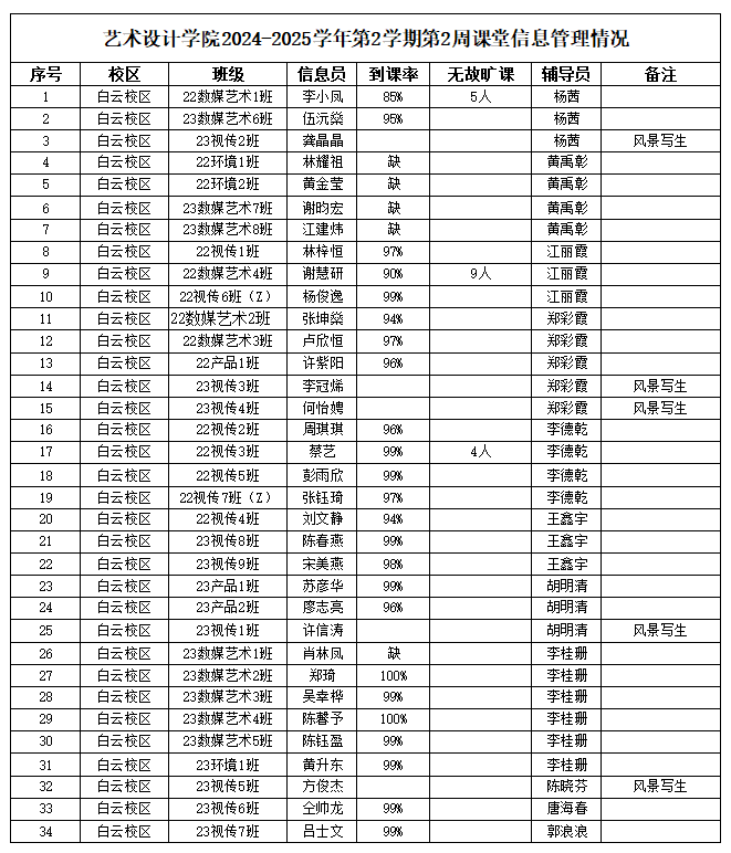 为进一步加强公司各类课程的课堂管理和学风建设,提高员工的出勤率、参与度,结合公司专业特点和实际情况,制定《bevictor伟德课堂管理实施方案》(试行)并按管理细则施行。现将2024-2025学年第2学期第2周课堂管理信息情况梳理如下: