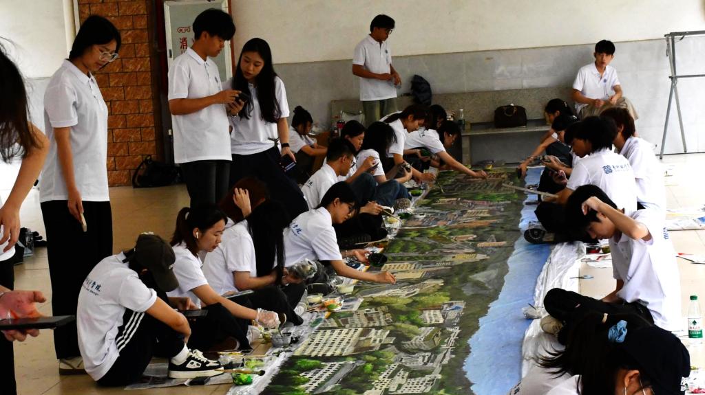 此次“百米画卷”活动不仅丰富了校园文化生活,更彰显了学子们的团队协作与艺术表现力,获得师生一致好评,为校园增添了一道绚丽的艺术风景线。