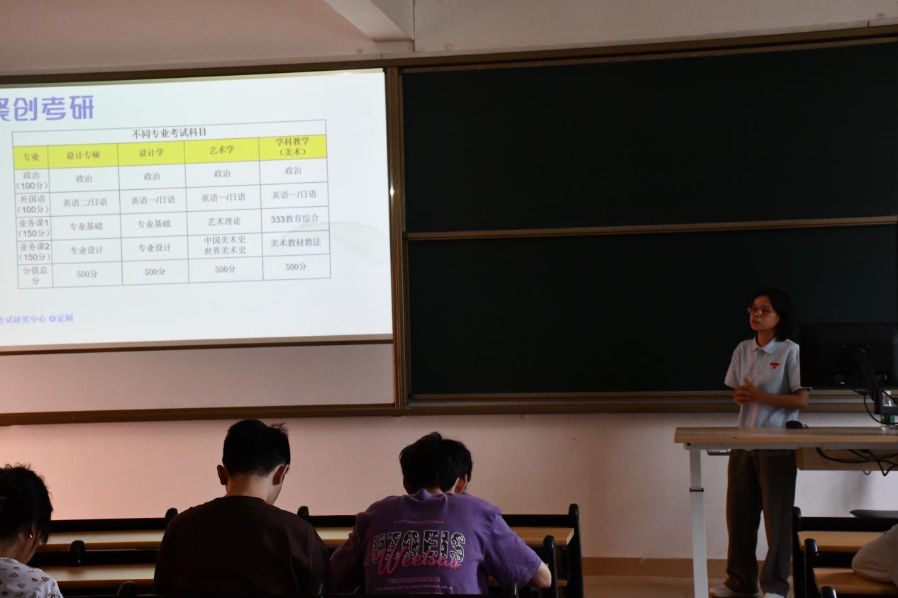 讲座伊始,周川老师以详实的数据和生动的案例,深入剖析了当前美术考研的整体形势。她指出,近年来,随着社会对高素质艺术人才需求的不断增加,美术考研的热度持续攀升,竞争也愈发激烈。从全国范围来看,报考人数逐年递增,而招生名额的增长速度却相对缓慢,这使得考研的难度进一步加大。她通过对比不同院校近几年的录取分数线、报录比等数据,让同学们对考研的严峻形势有了更清晰的认识,也为他们选择报考院校提供了重要的参考依据。