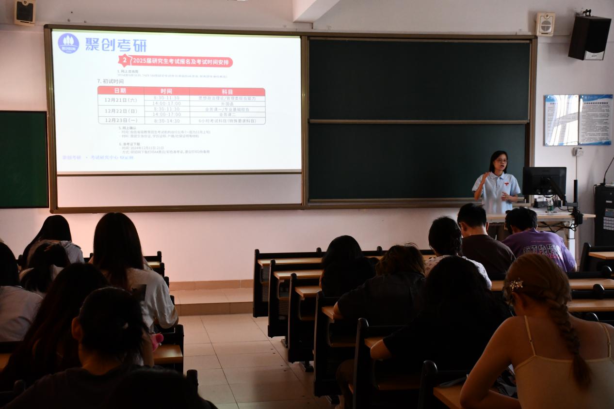 为助力公司学子深入了解考研形势、明确备考方向、掌握高效学习方法,2025年5月15日,公司在7-206举办考研专题讲座顺利举行。本次讲座特别邀请了考研资深专家聚创考研的周川老师担任主讲人,吸引了众多有考研意向的员工积极参与,现场气氛热烈。