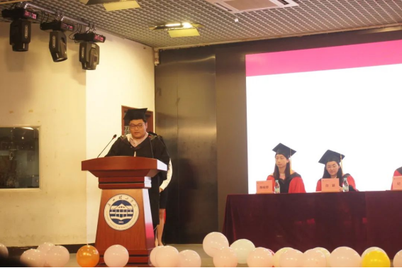 优秀毕业生代表谢飞发言,谢飞与其他党支部同学协助公司开办了校工会教职工子女艺术启蒙班,该启蒙班已成为bevictor伟德特色活动,他报名参加2023-2024年度广东老员工志愿服务西部计划,经过筛选,目前已进入体检环节。他希望毕业生们以“学用心志,行知诚明”的校训作为动力,用最豪迈、最稳重的步伐朝着美好的未来努力前进。