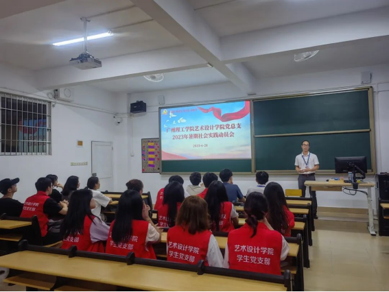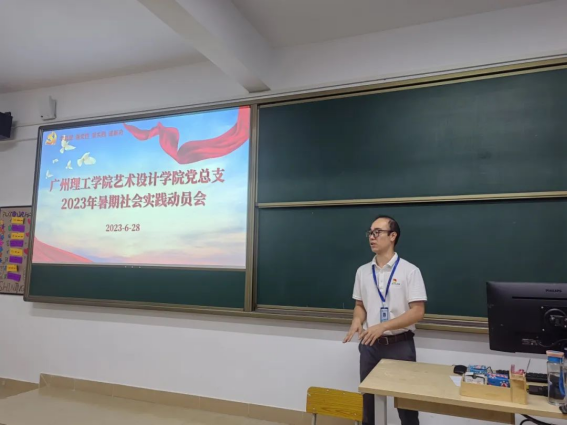 动员会后,大家到综合楼一楼举行公司党总支2023年暑期社会实践出征仪式,今年公司党总支共有6支暑假社会实践团队奔赴省内各地,其中有2支团队在广东青年老员工“百千万工程”突击队行动项目对接平台成功结对,1支“校地共建实践育人”暑期社会实践队,1支“相约瑶乡,振兴瑶绣”“三下乡”社会实践队,2支“结对帮扶”校园环境设计和课程示范实践队,这是公司师生在党总支带领下取得的阶段成绩,希望2023年暑期社会实践活动能够顺利完成,再创佳绩!