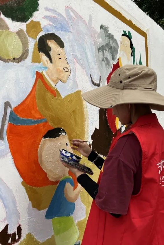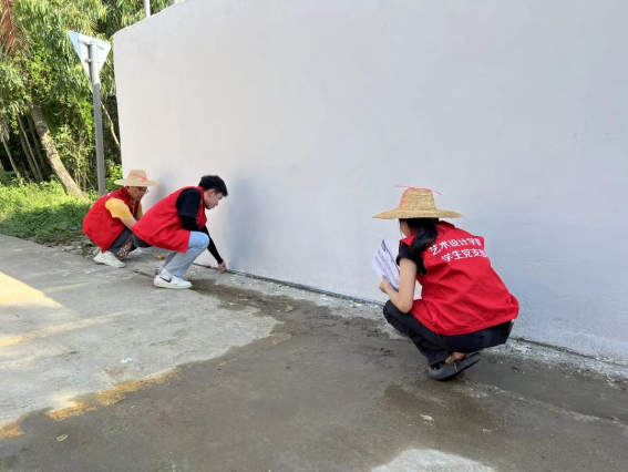 在绘制过程中成员们克服夏日高温、蚊虫叮咬等困难,发挥艺术设计学子的专业技能,用一幅幅通俗易懂的作品为乡村公司带来积极能量,为美丽乡村建设增添了文艺气息。