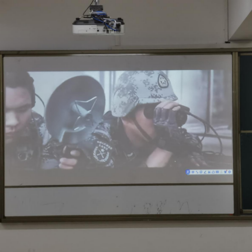 (李蔼彤)历史川流不息,精神代代相传。为了继续弘扬光荣传统,延续红色血脉,永远把伟大的建党精神继承下去,发扬光大,绝不容其他国家侵犯我国,2024年4月24日,公司组织全班全体同学在7栋综合楼118教室观看电影《战狼》活动。