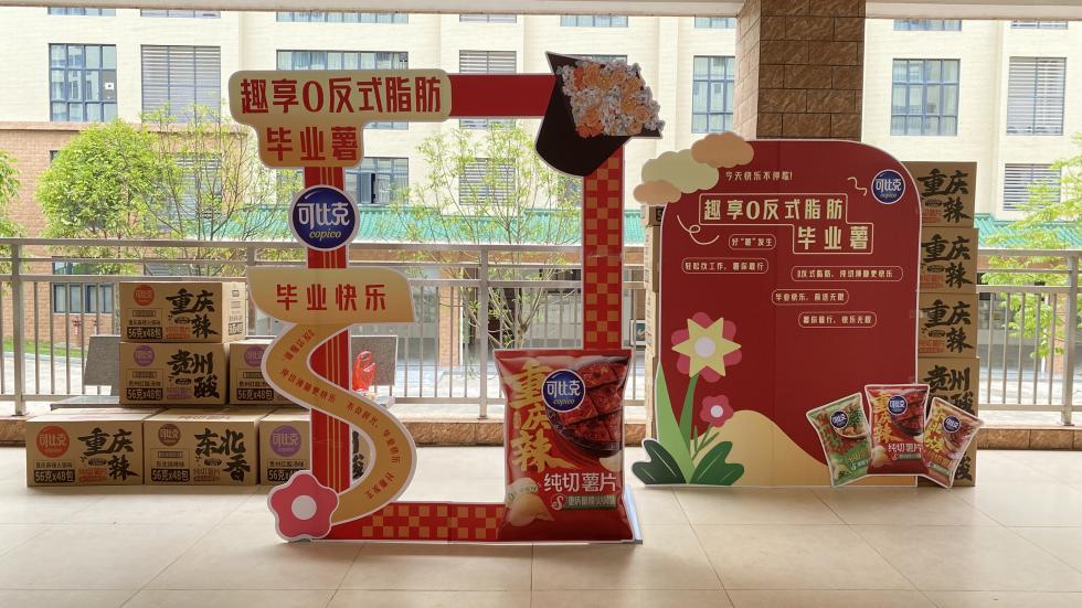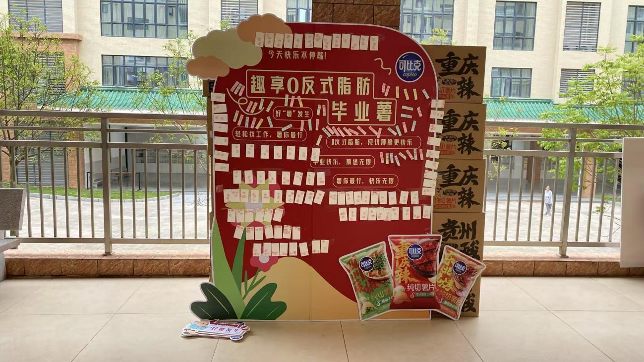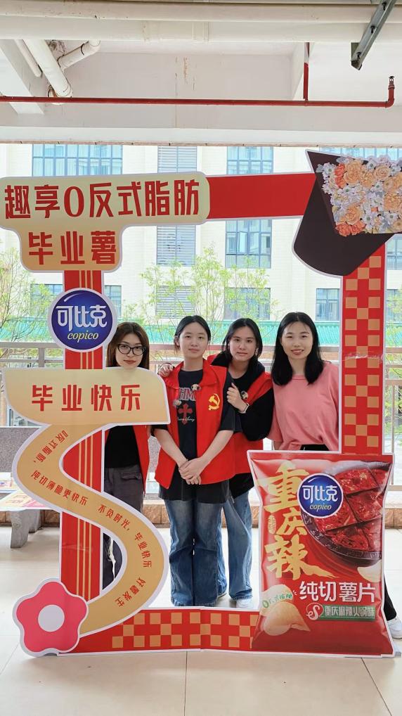 活动当天,现场气氛热烈非凡。“欢乐制造机”团队,团队负责人林栩,团队成员刘欢欢、钟娅楠,在指导老师徐苗老师的带领下,凭借独特的创意构思和丰富有趣的游戏活动吸引了众多师生参与,为校园带来了一场精彩纷呈的创意盛宴。结合校园场景展开创意游戏,团队以“趣享0反式脂肪毕业薯”为核心主题,通过薯片猜猜猜、舌尖捉迷藏、投壶争霸赛等环节,将产品“薄脆口感”与“0反式脂肪”健康理念融入沉浸式体验。活动吸引超千名师生参与,成功传播品牌。