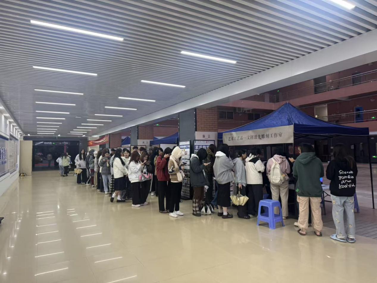 在文创产品热销的同时,纳新咨询处也排起了长队。工作室成员通过现场演示珐琅掐丝、点蓝等基础工艺,详细讲解工作室的日常运营、技能培训、赛事参与及成果转化等核心信息,让前来咨询的学子直观感受珐琅工艺的魅力与工作室的专业氛围。不少对传统工艺、文创设计感兴趣的同学当场填写报名表,更有同学主动留下来协助摊位运营,近距离体验珐琅文创的销售与推广过程。“没想到传统珐琅工艺能做出这么时尚的产品,既想学习制作技巧,也希望参与到文创产品的设计和推广中。” 一位刚报名的同学说道。