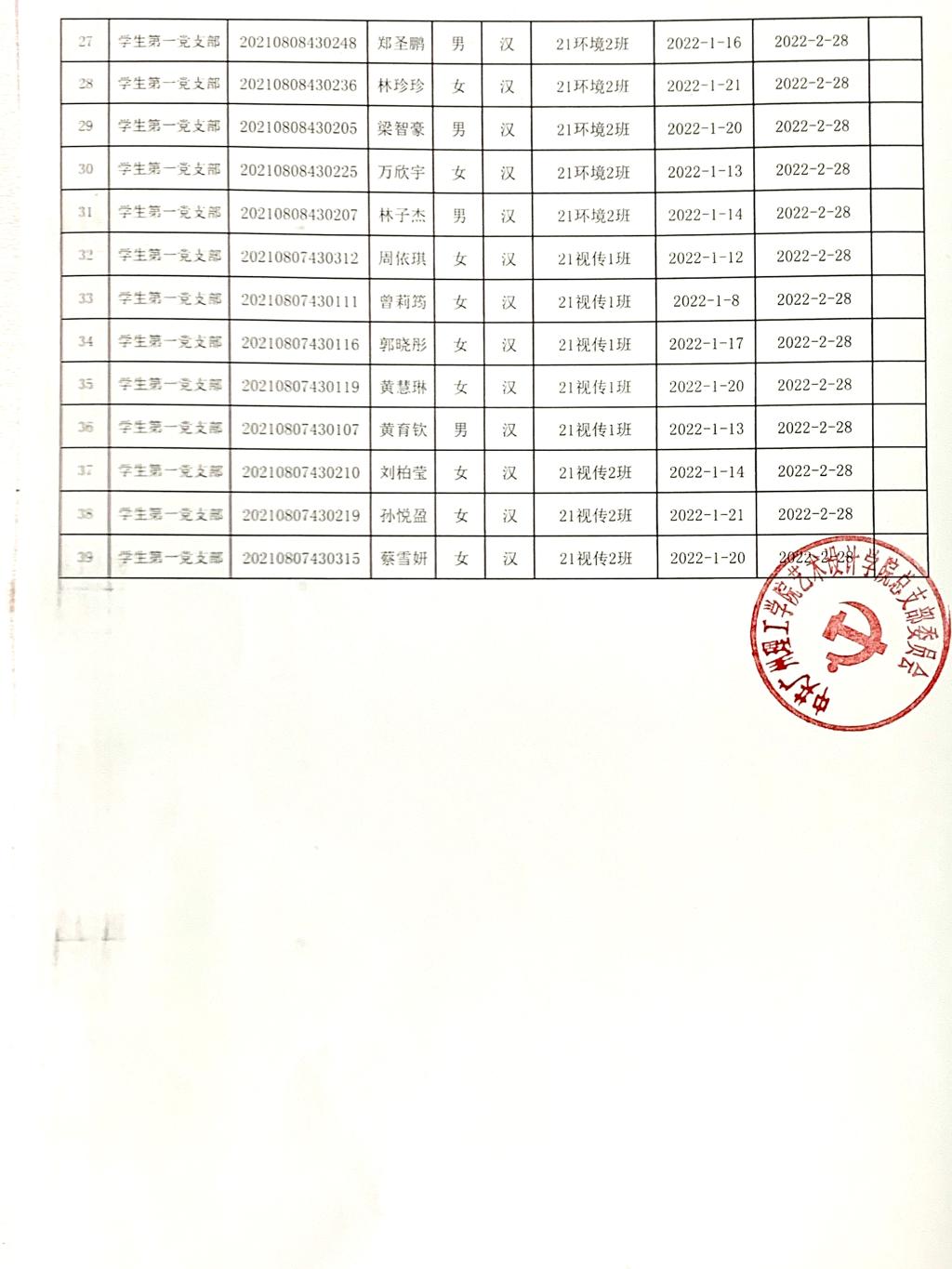 经本人申请,所在支部一个月以上的培养教育考察,叶敬贤等39名同志列为2022年第1期入党积极分子(名单见附表)。根据《中国共产党章程》和《中国共产党发展党员工作细则》,现将发展对象的基本情况予以公示。