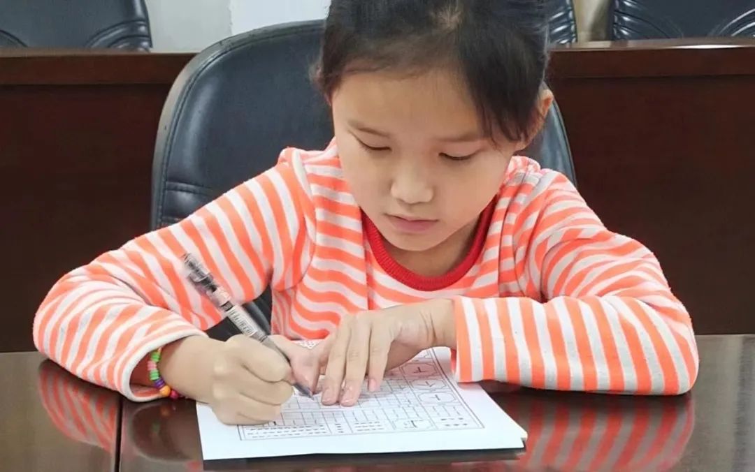 书法大班本周课程内容:主要学习垂露竖和悬针竖的写法,配合四个例字练习:卜,下,丰,止,逐渐矫正员工的书写姿势。