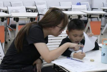 书法小班课程学习“点,横,横折,横撇,折撇的笔画”,课堂上教小朋友们学会分析书法结构,讲解示范汉字笔顺笔画规则,同时矫正握笔与坐姿。