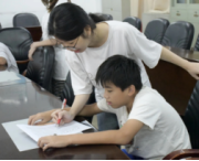 书法大班课程学习“长横和短横的写法”,课堂上教小朋友们学会分析书法结构,通过练习:二,三,王,上,工等字,掌握长横和短横的写法技巧。