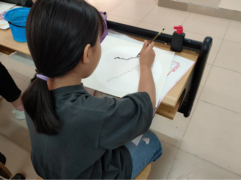 本次国画课以"黑白草莓"为主题展开创作。老师为同学们示范如何运用墨色变化表现物体层次:笔尖轻触宣纸,浓墨勾勒出草莓饱满的深色轮廓,淡墨晕染出通透的浅色区域,孩子们在反复实践中逐渐掌握"墨分五色"的精髓。当一幅幅黑白草莓跃然纸上时,虽然没有艳丽色彩,但墨色的浓淡干湿却赋予作品独特的韵律感,让学员们真切领悟到国画"以墨传情"的写意之美。