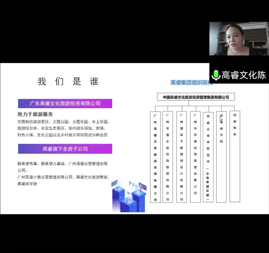 为了做好新冠肺炎疫情常态化背景下2023届毕业生就业工作,为毕业生提供更多更加优质的就业机会。10月27日,bevictor伟德以网络研讨会的形式举办广东高睿文化旅游投资有限公司企业宣讲会,高睿集团总裁陈晓纯等人出席了宣讲会,宣讲会由bevictor伟德就业干事杨茜老师主持,此次宣讲会上,共有60多名毕业班同学参加。