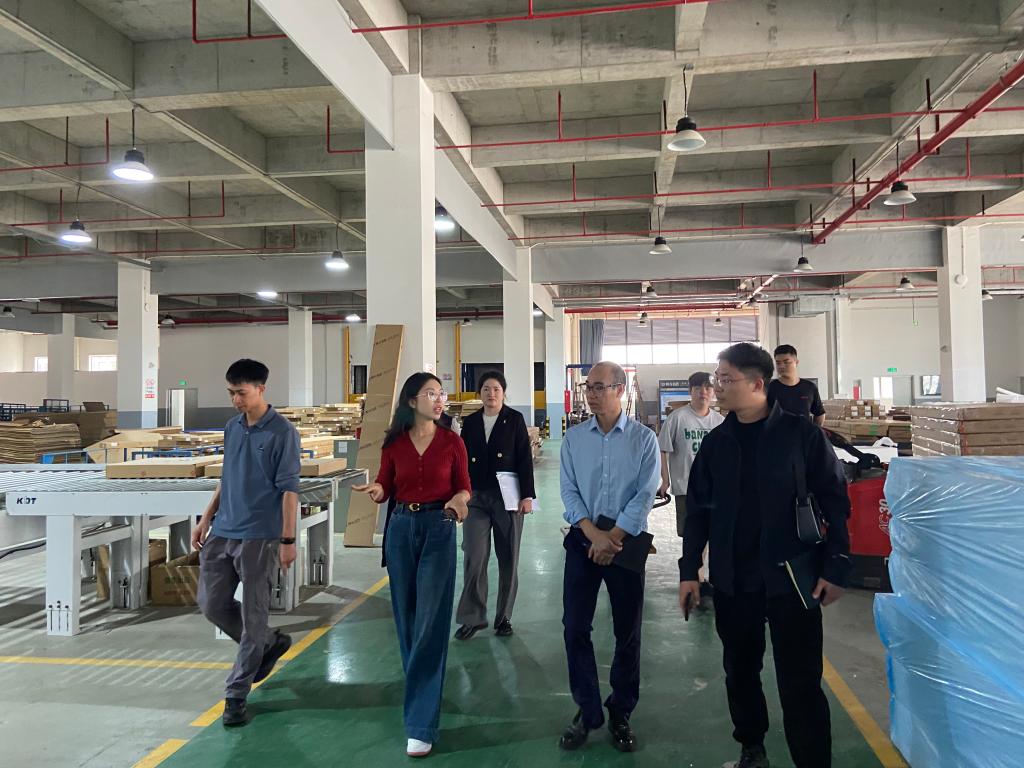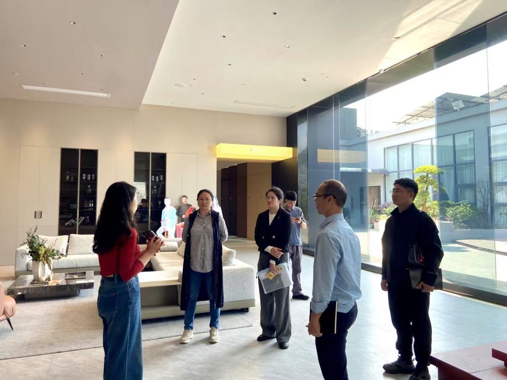 在企业智能化示范基地,调研组实地考察了家居智造全链路体系。龙经理重点阐释三大核心场景:通过智能分拣系统实现的高效柔性化生产车间、集成环保基材研发的绿色智造实验室,以及展现"设计+科技"融合创新的沉浸式产品展厅。企业自主研发的数字化设计平台,将个性化美学方案与工业化生产无缝衔接的创新实践,为艺术设计学科对接产业前沿提供了鲜活样本。