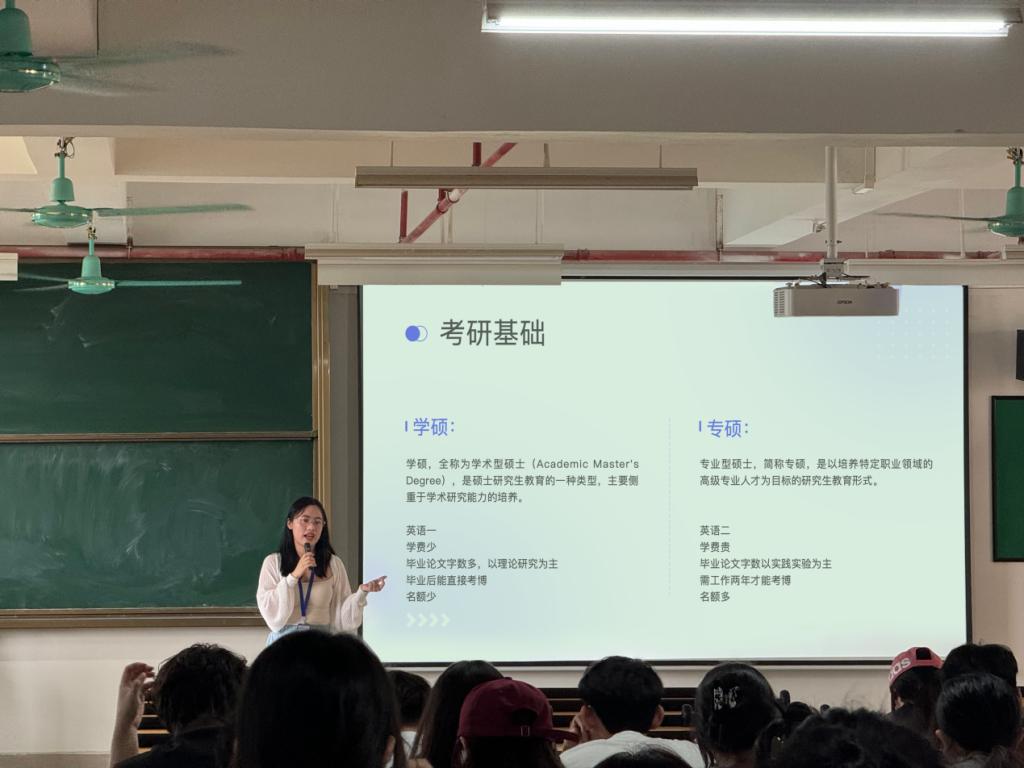 讲座在下午16:00准时开始,刘丽君老师首先分享了自己的考研经验,她的话语中透露出对学术探索的热情和对知识深度的追求。她指出,考研不仅能开拓员工的国际视野,还能显著提升个人的学历层次,从而增加就业机会和社会地位。接着,刘老师深入分析了学硕与专硕的区别,以及全日制与非全日制研究生教育的特点。她强调,员工应根据自己的职业规划和兴趣选择适合的研究生类型。此外,刘老师还对国内外考研的区别进行了细致的阐述,包括教育体系、入学要求和学术氛围等方面。