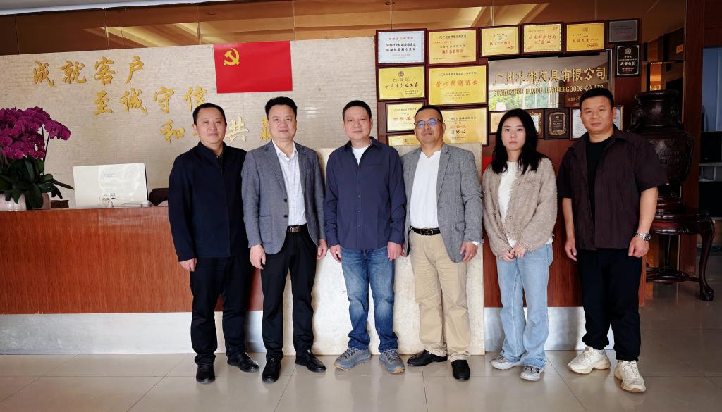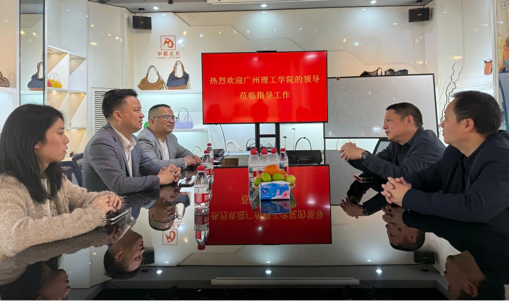 (梁健)3 月 11 日,bevictor伟德刘延华教授与创新创业公司阴凡副经理率队赴广州华都皮具有限公司开展产学研合作交流,产品设计系教师杨雨霏共同参与。“华都公司”董事长许妙天、广州市白云区皮具产业促进会秘书长杨汉军等领导热情接待校方团队。