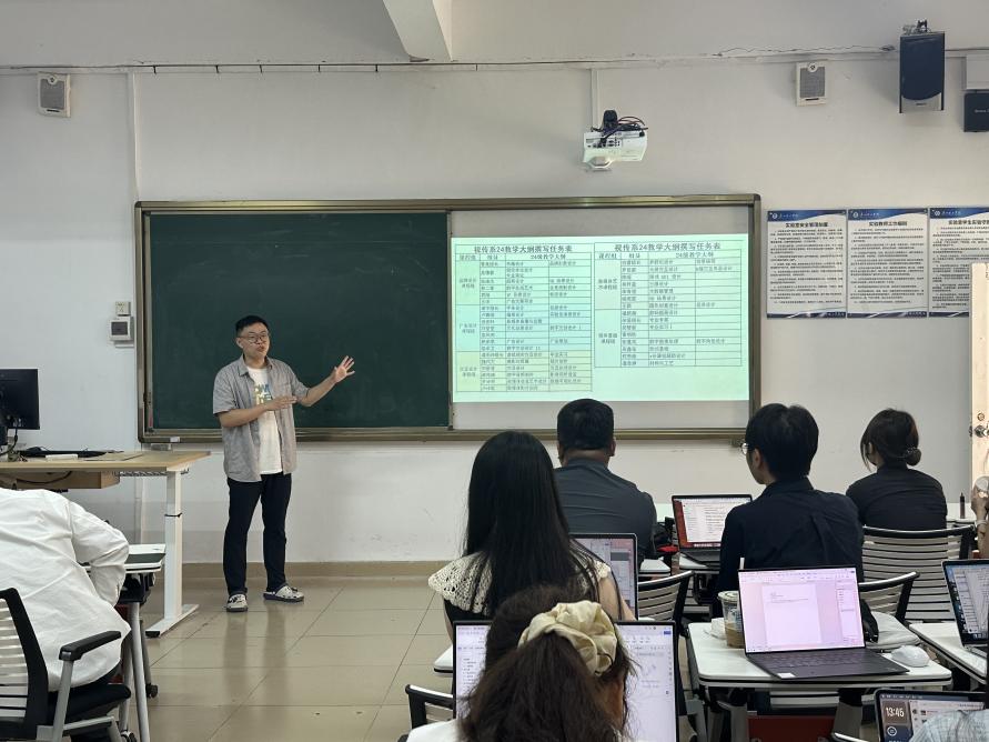 随后,潘雨沛老师在会议中详细布置了关于2024级教学大纲撰写及毕业实习资料汇总的重要任务。强调教学大纲的撰写需紧密围绕人才培养方案,对应课程的学科前沿,结合专业特点,明确教学目标、内容与方法,确保教学内容既具有前瞻性,又贴近实际应用。