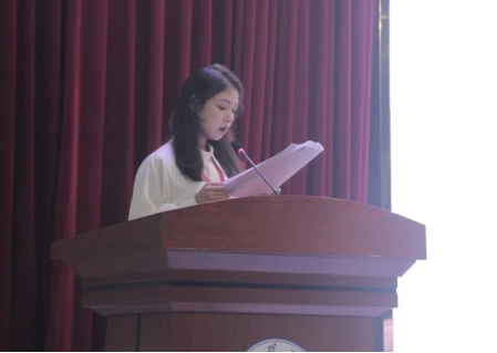 会议第三项议程:校员工会代表卢婉怡宣读校团委《关于同意公司召开第二次员工代表大会的批复》