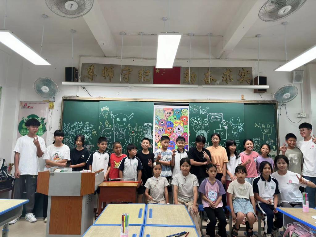 7月8日上午9点,“智慧火花”突击队支教活动正式启动!9名队员带着满腔热情,走进了位于博罗县龙华镇的北堤小学。这里,孩子们对于艺术的渴望如同久旱逢甘霖,而突击队员的到来,则为他们打开了一扇通往艺术世界的大门。本次支教活动以“美育乡村,绘梦童年”为主题,围绕绘画、手工艺等领域展开。队员们通过丰富多彩的教学方式,让孩子们在轻松愉快的氛围中感受艺术的魅力。