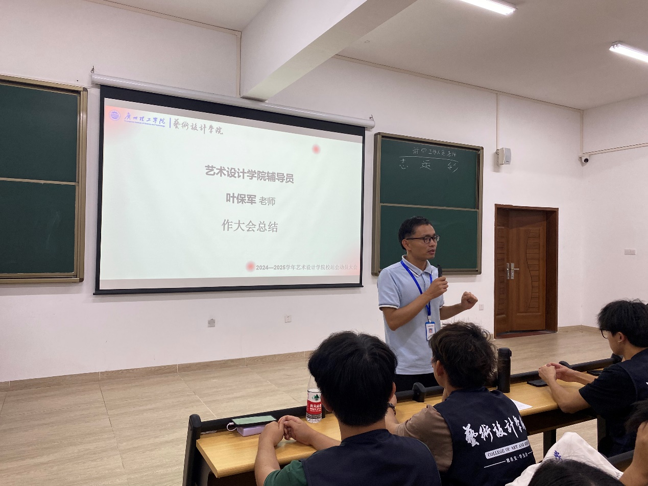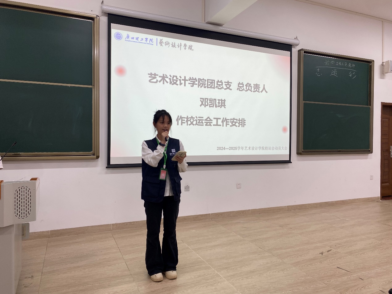 首先,科技创新部干事潘安琪详细地向同学们讲述运动过程中的安全问题,提醒同学们要时刻保持警惕,避免受伤。其次,团总支文体部干事邓凯琪讲解校运会工作流程和任务分配,以及工作人员注意事项。辅导员叶保军作大会总结,他提醒工作人员认真了解校运会安排,强调运动员安全第一,赛前做好相应准备,希望运动员们赛出好成绩。最后辅导员彭义哲激励运动员保持斗志昂扬的状态面对比赛,预祝运动员取得良好成绩。