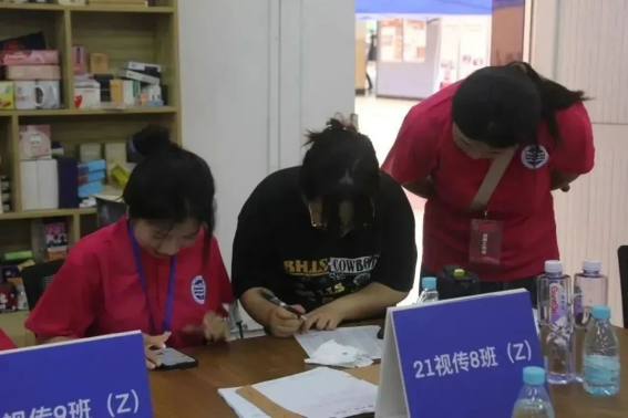 接待现场井然有序,志愿者们指引新生办理报到注册,按班级提交个人材料,获取宿舍分配信息,迎新志愿者们一对一为新生提供一条龙服务,环环相扣,快捷高效,帮助新生顺利融入校园生活。