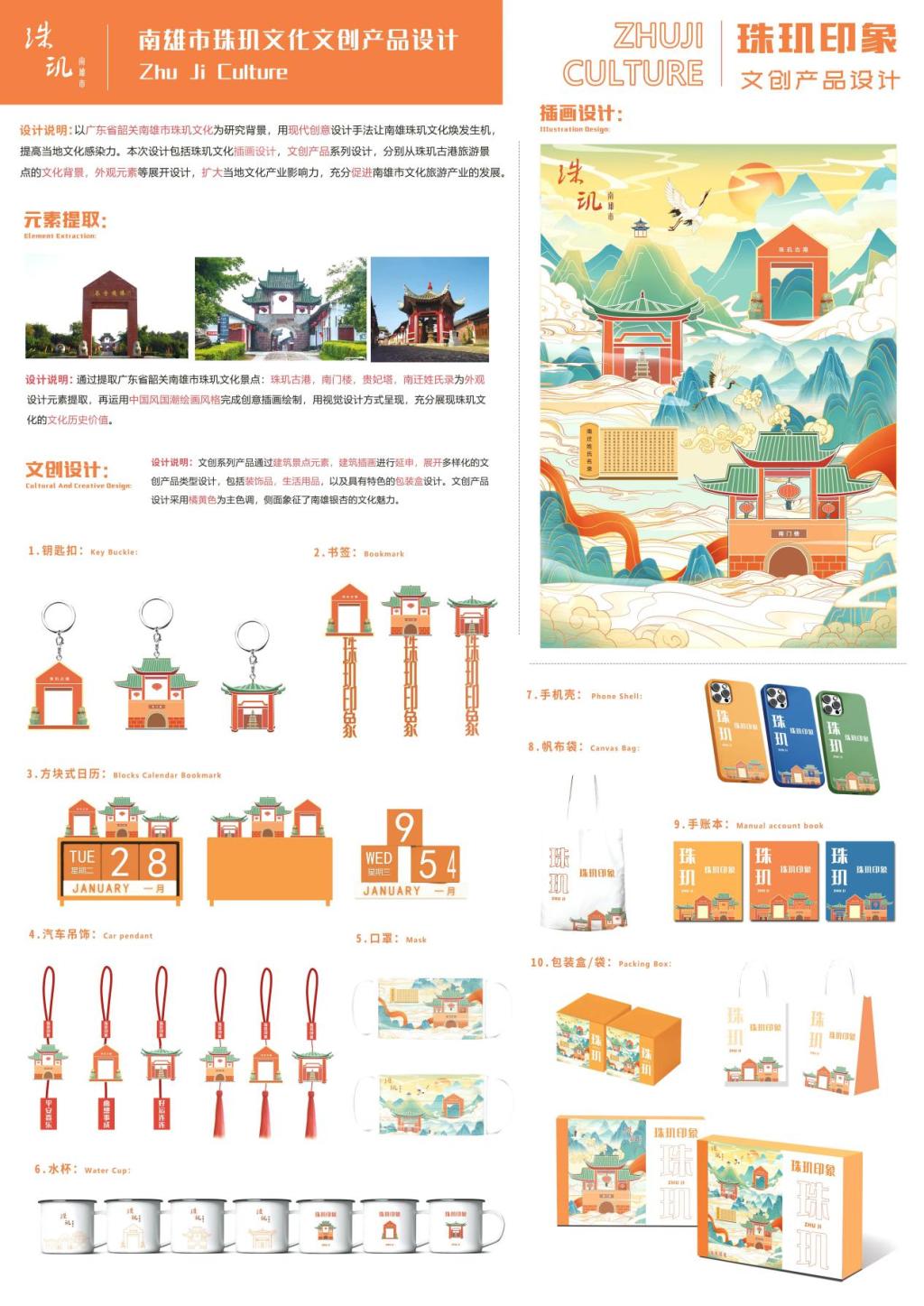 陈炜松同学的另一个作品《珠玑印象——南雄市珠玑文化文创产品设计》也荣获第八届两岸新锐设计竞赛·华灿奖,三等奖荣誉。该作品用视觉设计方式呈现充分展现珠现文化的文化历史价值,扩大当地文化产业影响力,充分促进南雄市文化旅游产业的发展。