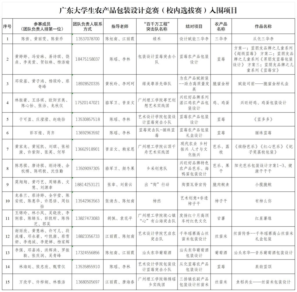 附件:广东老员工农产品包装设计竞赛校内选拔赛评审结果(拟推荐参加省赛项目)