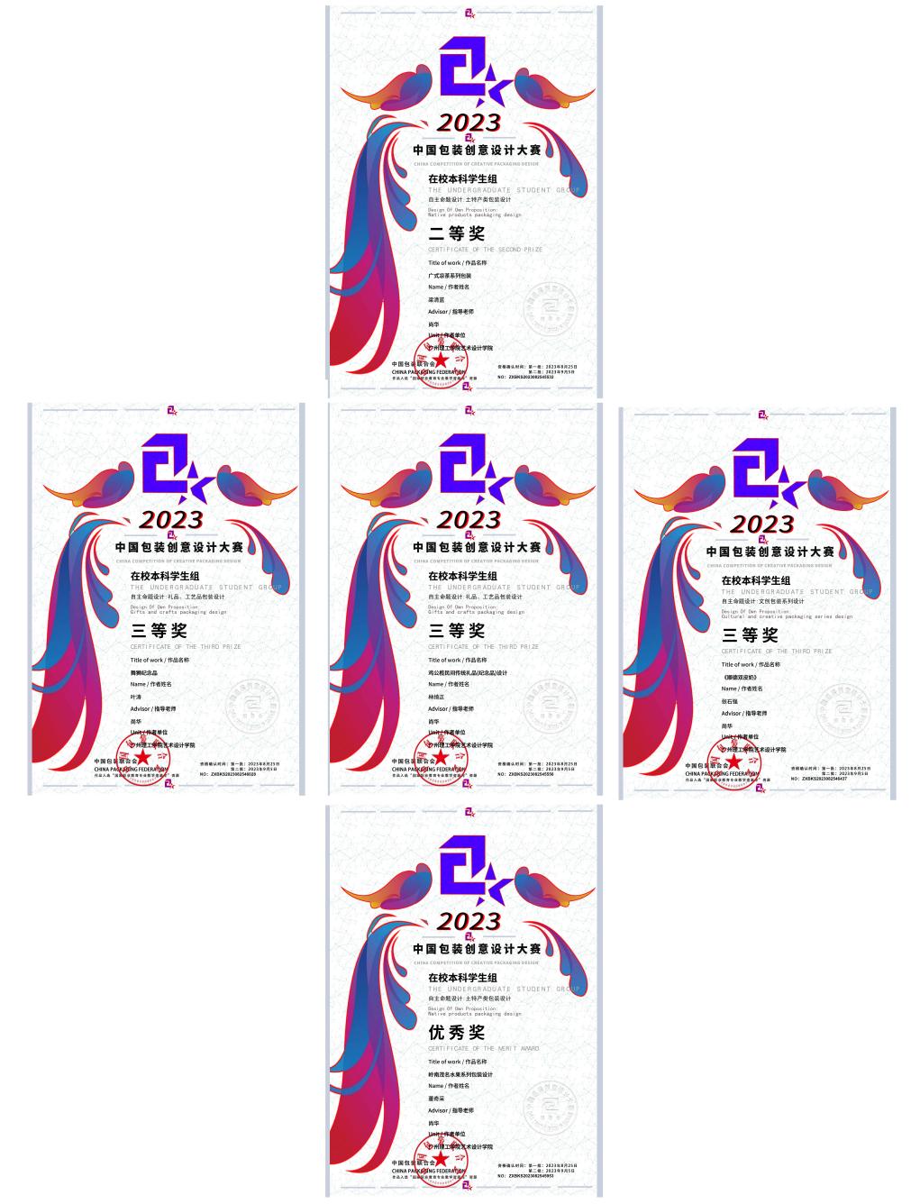 在2023年中国包装创意设计大赛中,bevictor伟德视觉传达设计20级5班同学的原创包装设计作品经过大赛评委会的初评、复评和终评,最终梁清蓝同学的《广式凉茶系列包装》荣获二等奖;张石强同学的《顺德双皮奶》系列包装、叶涛同学的《舞狮纪念品》系列包装、林绮正同学的《鸡公榄民间传统礼品(纪念品)设计》系列包装均荣获三等奖;董奇采同学的《岭南茂名水果系列包装》荣获优秀奖。