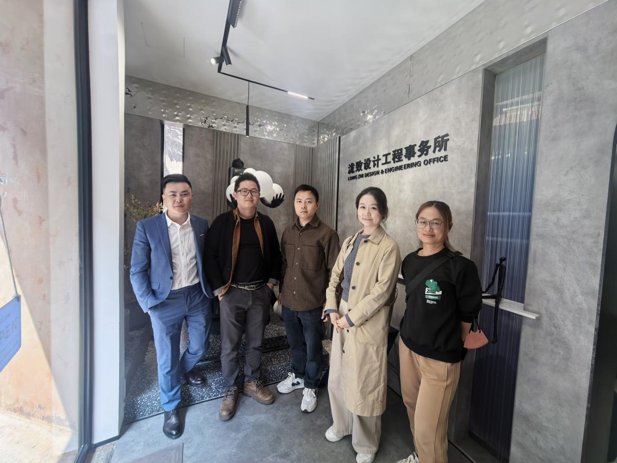值得一提的是,启鸿建筑设计事务所与泷致设计工程事务所建立了深度战略合作关系,两家公司位于同一栋建筑内办公,形成了设计产业链的有机互补。泷致设计工程事务所专注于室内设计领域,与启鸿建筑设计事务所在项目上协同合作,为客户提供从建筑到室内的一体化解决方案。在陈丽娜老师的参观过程中,她还与泷致公司负责人进行了深入洽谈,探讨了室内设计与环境设计的融合发展前景,为未来的校企合作开辟了新思路。