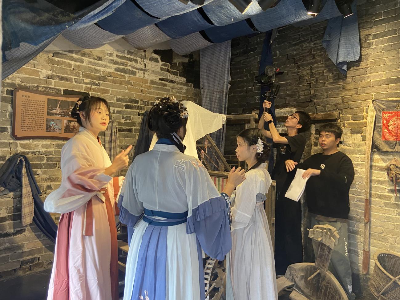 现场拍摄过程中员工对拍摄场地勘测分析、剧本细化动作分解、服装造型及道具的准备。拍摄期间,佛山驻镇工作队队长、镇委副书记陈启浩及其他领导莅临拍摄现场参观指导及关心同学们。并对同学们的影视策划的专业水平表示认可。通过课程实践的“教”与“学”的多元形式,为乡村振兴贡献智慧和力量。