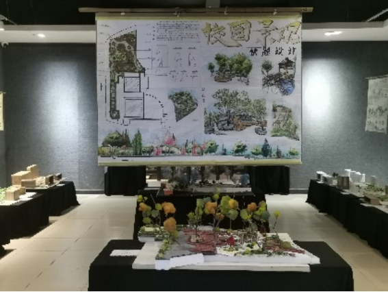 这次展览结合园林景观设计课程,通过实践研究,完成校园广场文化景观改造设计。同学们通过手绘展板和利用生活垃圾制作的模型,参与到校园的景观设计提升中来。他们充分运用自身的学科知识与动手能力,以手绘和手工模型的方式展示了如何将生活垃圾运用到我们的专业之中,如何在我们的设计课堂上体现我们的学科知识;这些作品不仅展示了他们的创意,也传达了环保的重要性,更体现出员工们对于校园景观提升的各种想法。